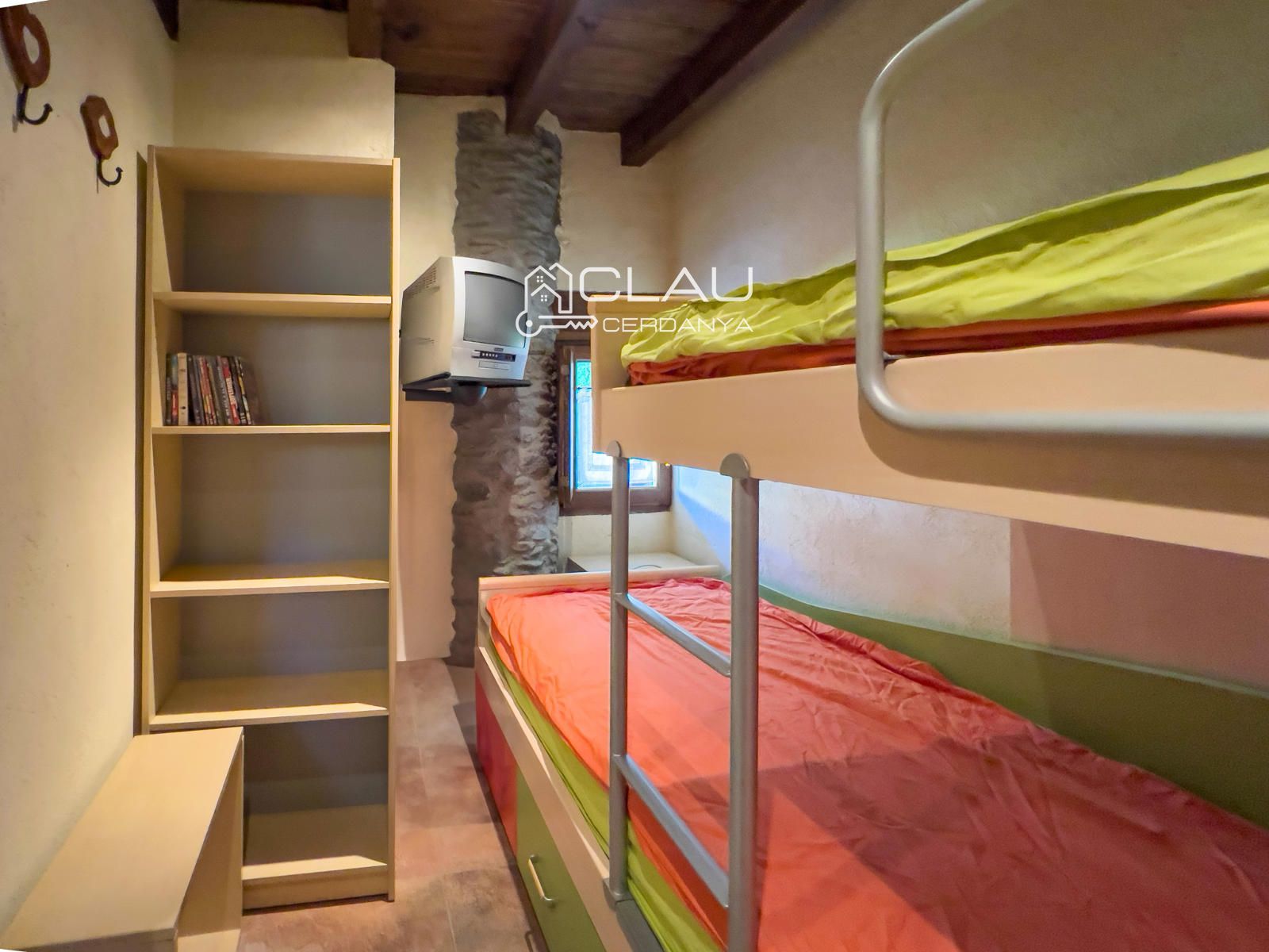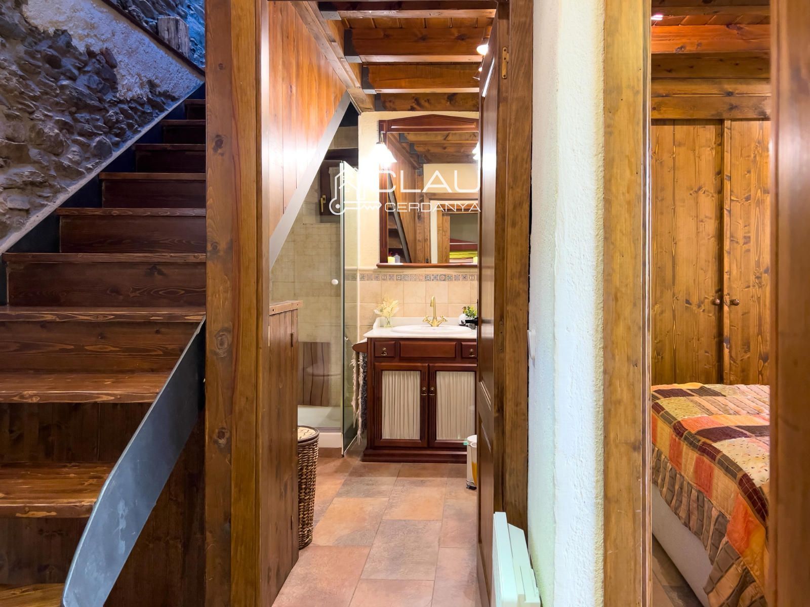 Este encantador dúplex se encuentra en el pintoresco pueblo de Err, en la Cerdanya francesa. Es una antigua casa ceretana reformada con mucho carácter, distribuida en dos plantas. En la planta baja, encontrarás un acogedor recibidor, dos habitaciones (una con litera y la otra de matrimonio) y un baño completo.