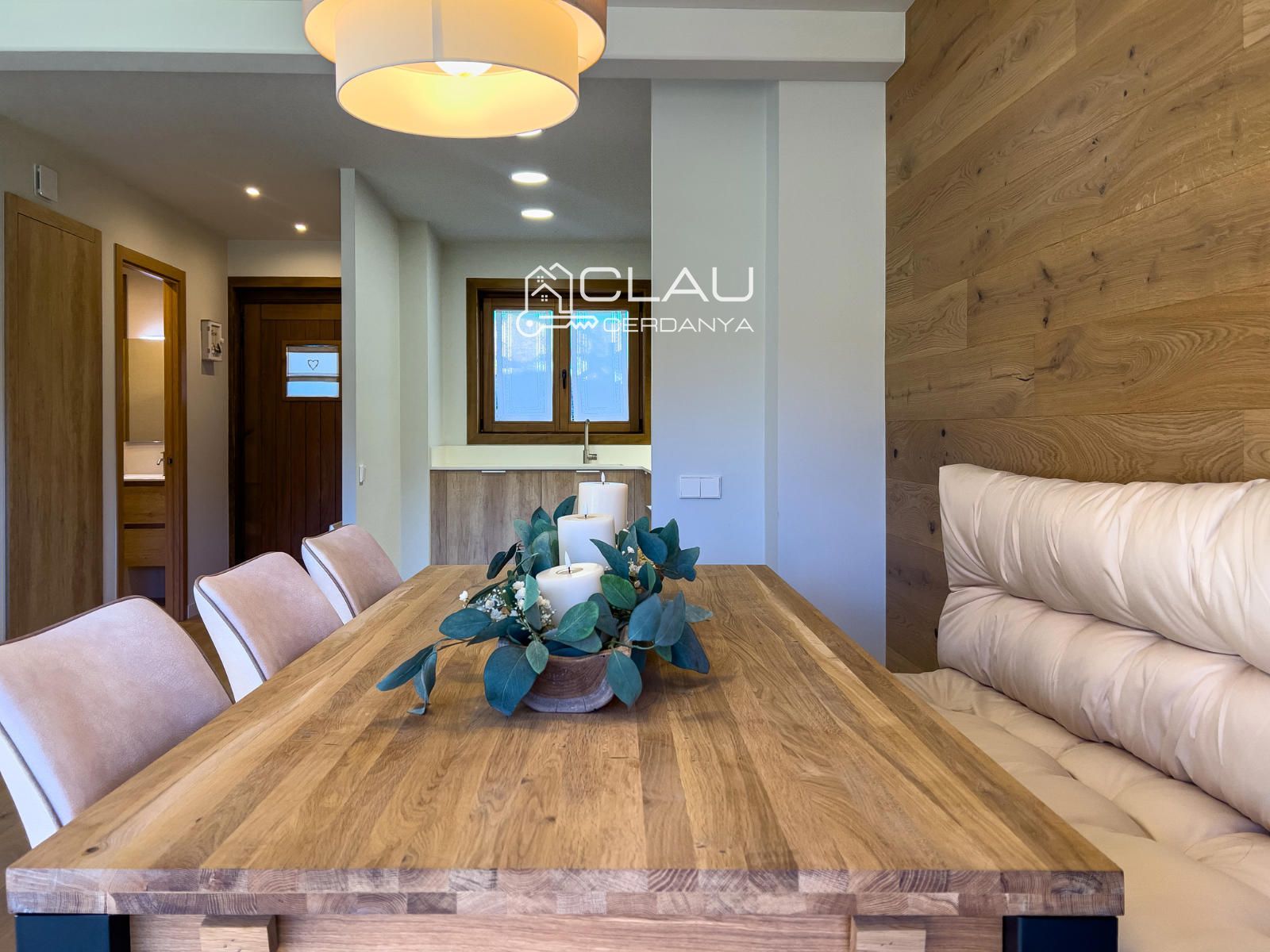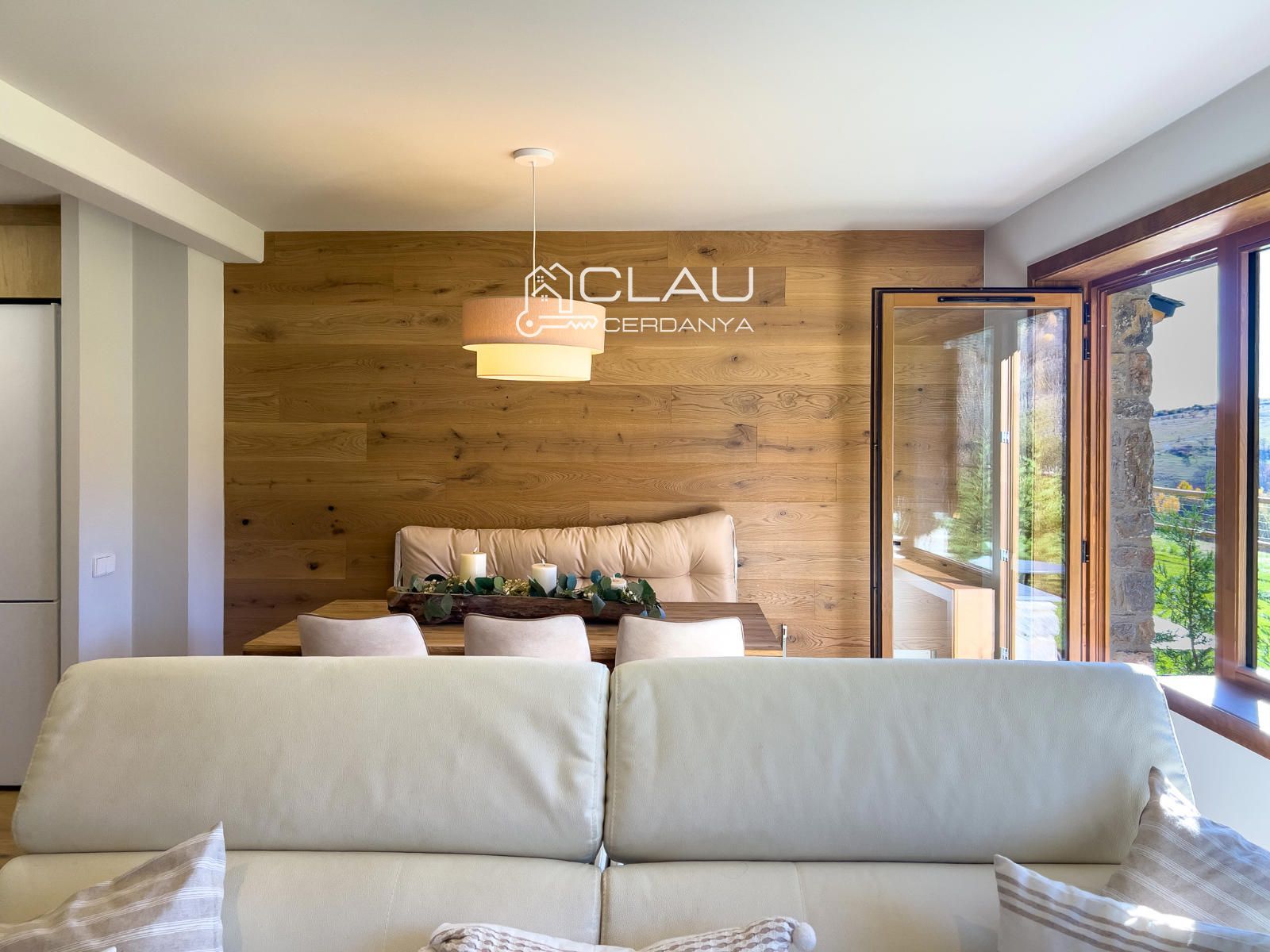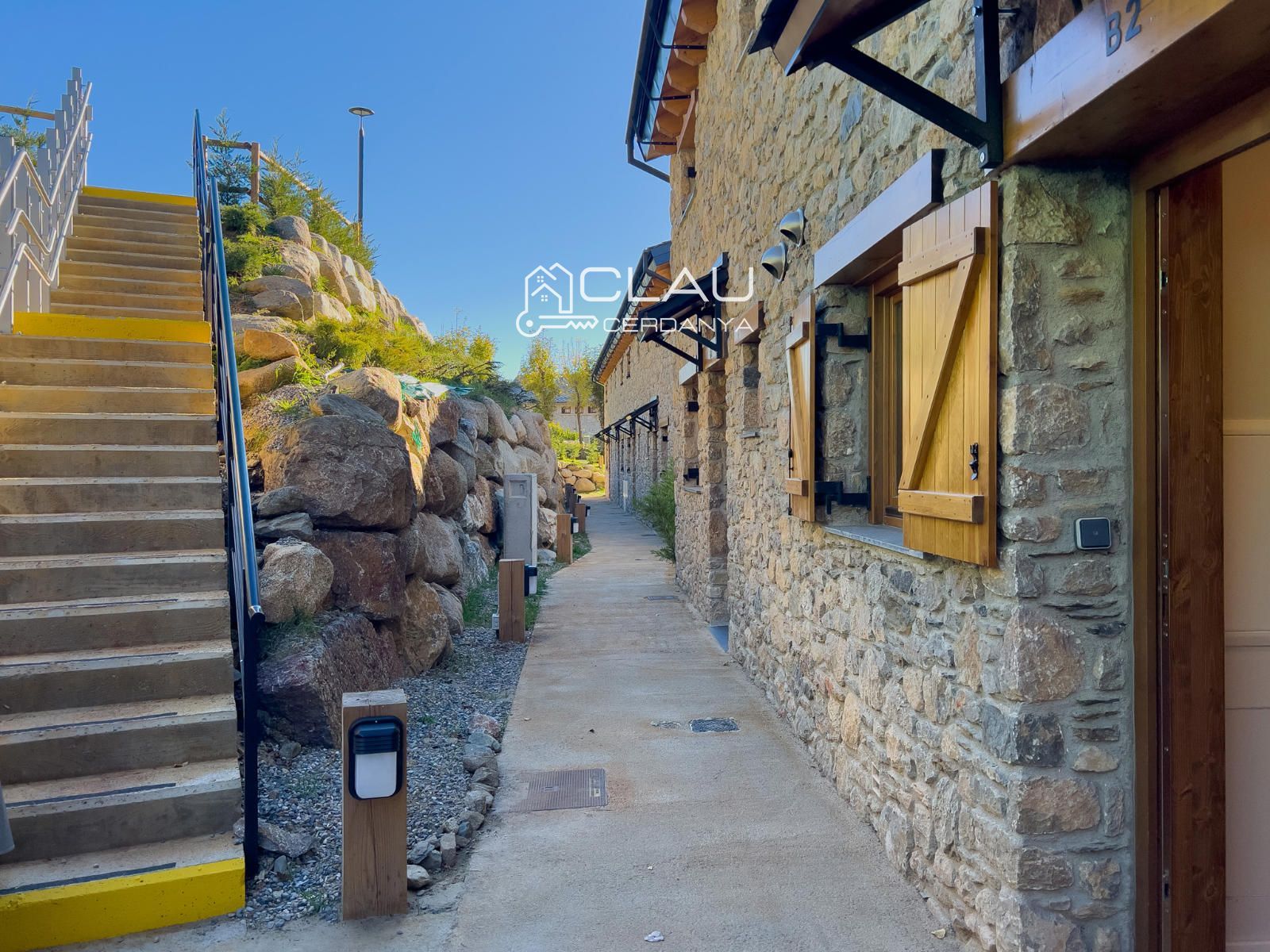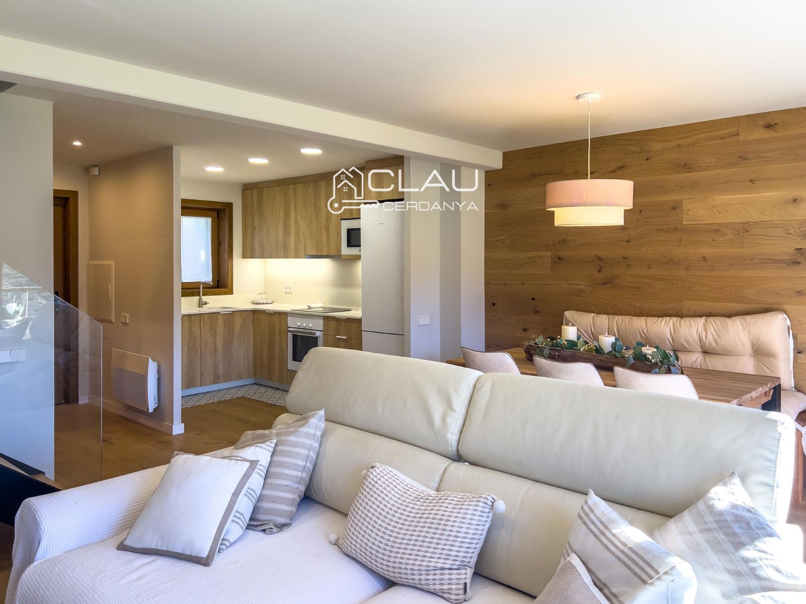 La vivienda ofrece 108 m² construidos (104 m² útiles) distribuidos en dos plantas. En la planta baja, un amplio salón-comedor con grandes ventanales y salida directa al jardín privado de 30 m² invita a descansar tras un día de esquí. La cocina abierta, moderna y totalmente equipada se integra con estilo y funcionalidad, junto a un baño completo.