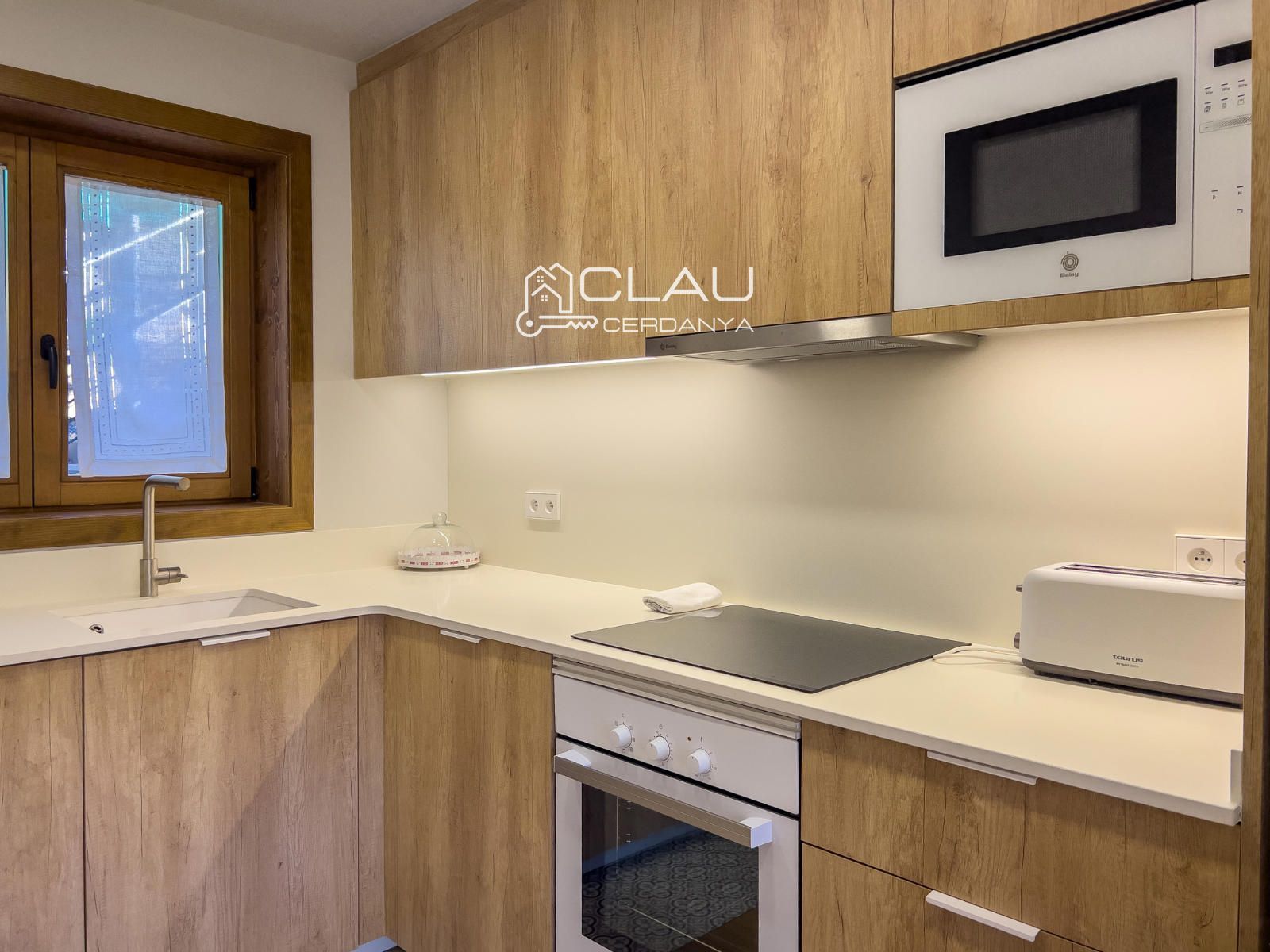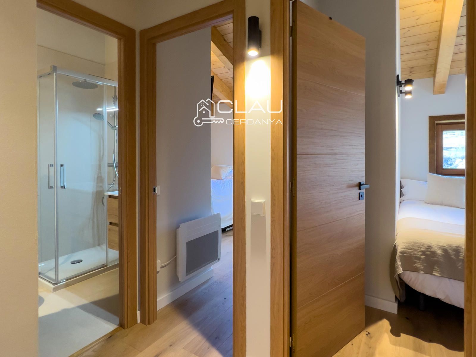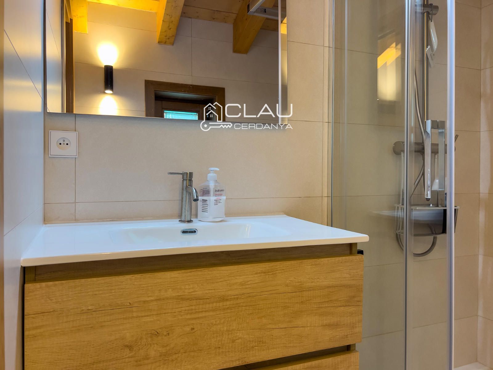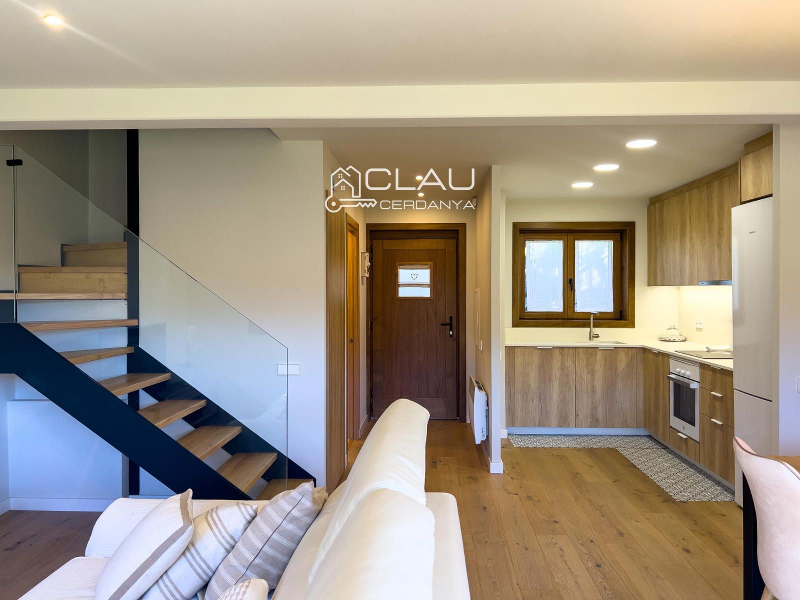 La vivienda ofrece 108 m² construidos (104 m² útiles) distribuidos en dos plantas. En la planta baja, un amplio salón-comedor con grandes ventanales y salida directa al jardín privado de 30 m² invita a descansar tras un día de esquí. La cocina abierta, moderna y totalmente equipada se integra con estilo y funcionalidad, junto a un baño completo.